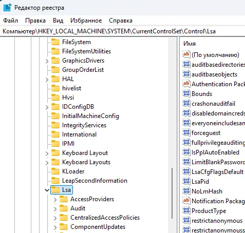 — Перейдите к пути: HKEY_LOCAL_MACHINE\SYSTEM\CurrentControlSet\Control\Lsa