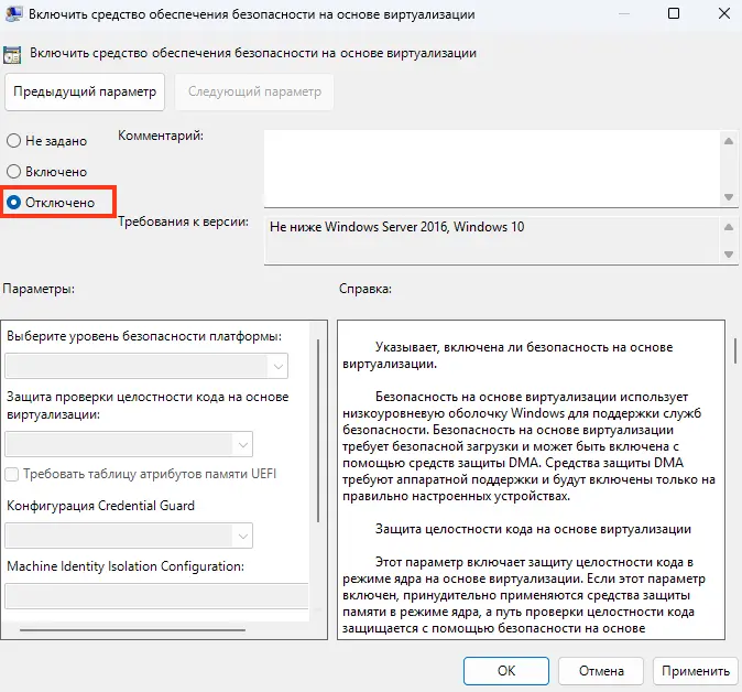 Отключение Credential Guard (При необходимости)