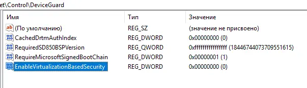 — Имя: EnableVirtualizationBasedSecurity