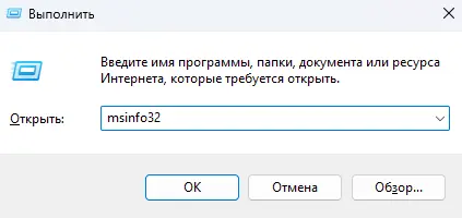 — Нажмите Win + R, введите msinfo32 и нажмите Enter.