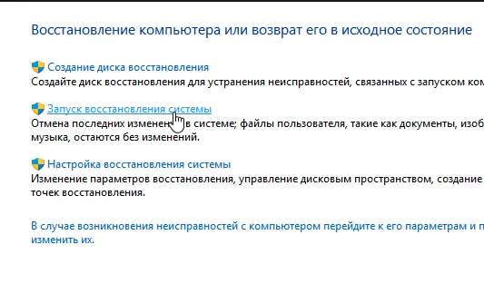 — Откройте «Панель управления» → «Восстановление» → «Запуск восстановления системы».