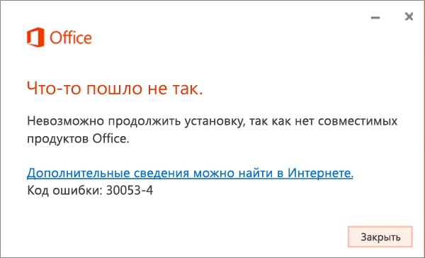 Если у Вас возникают ошибки с кодом 30053-4, или 30053-39 при установке языкового пакета, это может значить, что Вы устанавливаете языковой пакет не на подходящую редакцию Microsoft Office, либо вообще без пакета Office. Перед тем, как установить языковой пакет, Вам необходимо установить само приложение Microsoft Office.