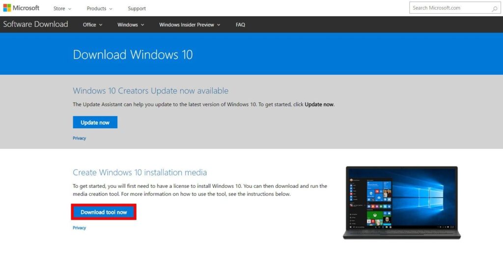 You can download the utility from the official Microsoft website. Click on the «Download tool now» button to download it.