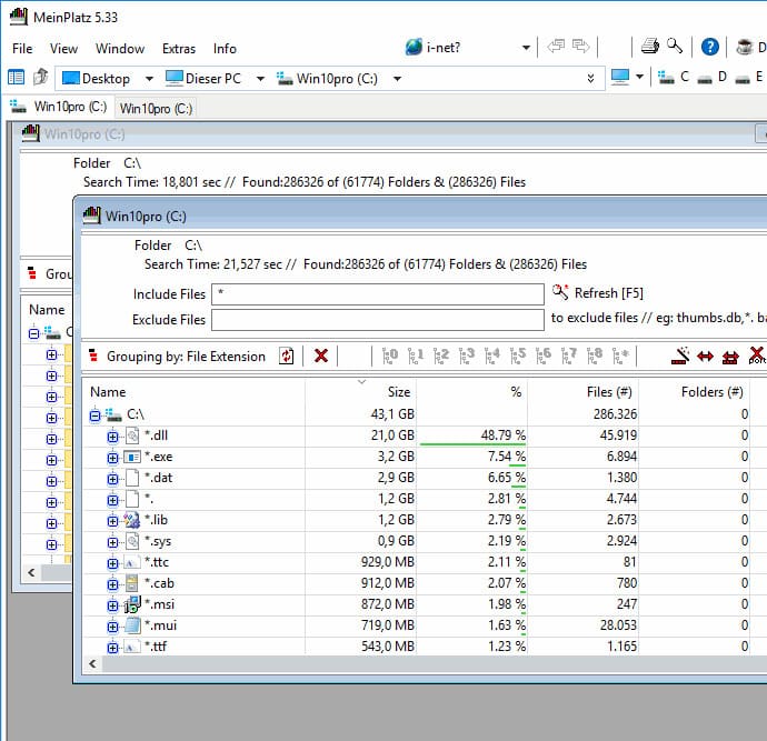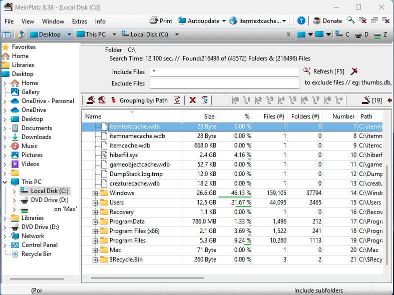 MeinPlatz does not offer a graphical display of data like SpaceSniffer or WinDirStat, but uses a tree structure. This may be more convenient for users who prefer a simple text interface.