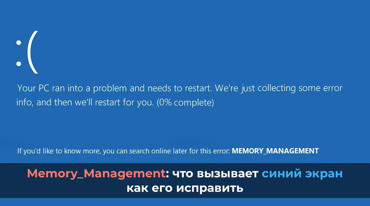 Ошибка Memory_Management указывает на нарушение работы подсистемы управления памятью Windows. Этот компонент отвечает за распределение оперативной и виртуальной памяти между процессами, драйверами и ядром. Если в процессе работы ядро обнаруживает повреждённые структуры данных или невозможность корректного доступа к памяти, система инициирует аварийное завершение — появляется синий экран смерти (BSOD).