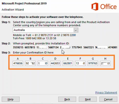 Note! You need to enter your installation ID, which is specific to your program’s phone activation window. The screenshot below is an example.