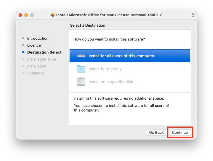 4. Install for all users. Click «Continue.»