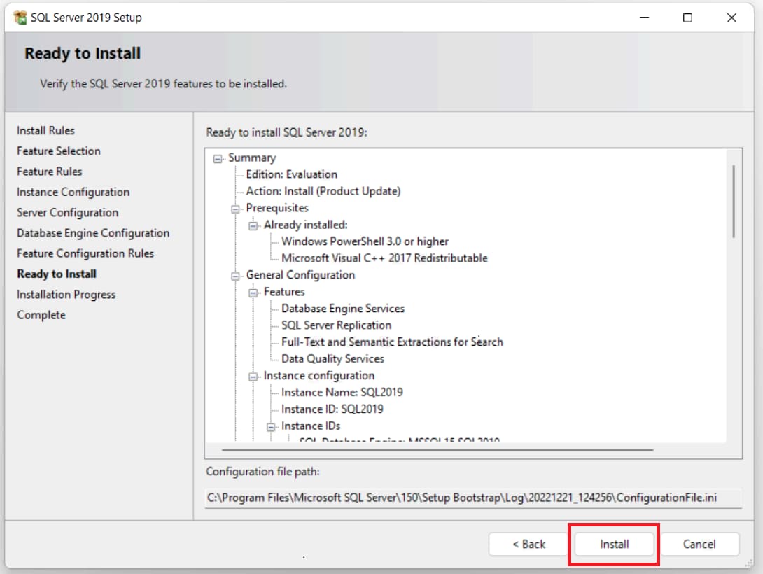 10) Now in the next window you can observe all the settings and settings that you previously set. Click «Install».