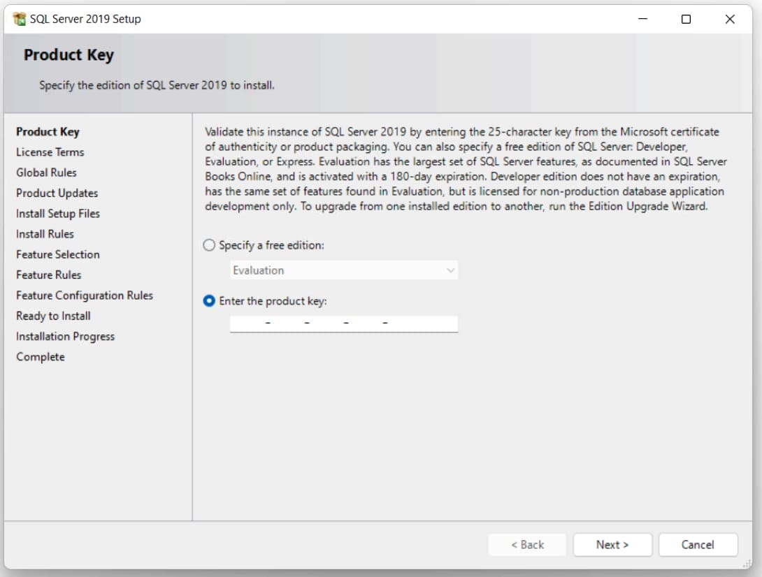 Or if you have an activation key from a full-featured version, for example Microsoft SQL Server 2019 Standard, then you can enter your product key in the lower field. You can purchase an activation key for SQL Server 2019 Standard in our catalog on the next page. Delivery within a few hours to your email. Warranty and 24-7 technical support.
