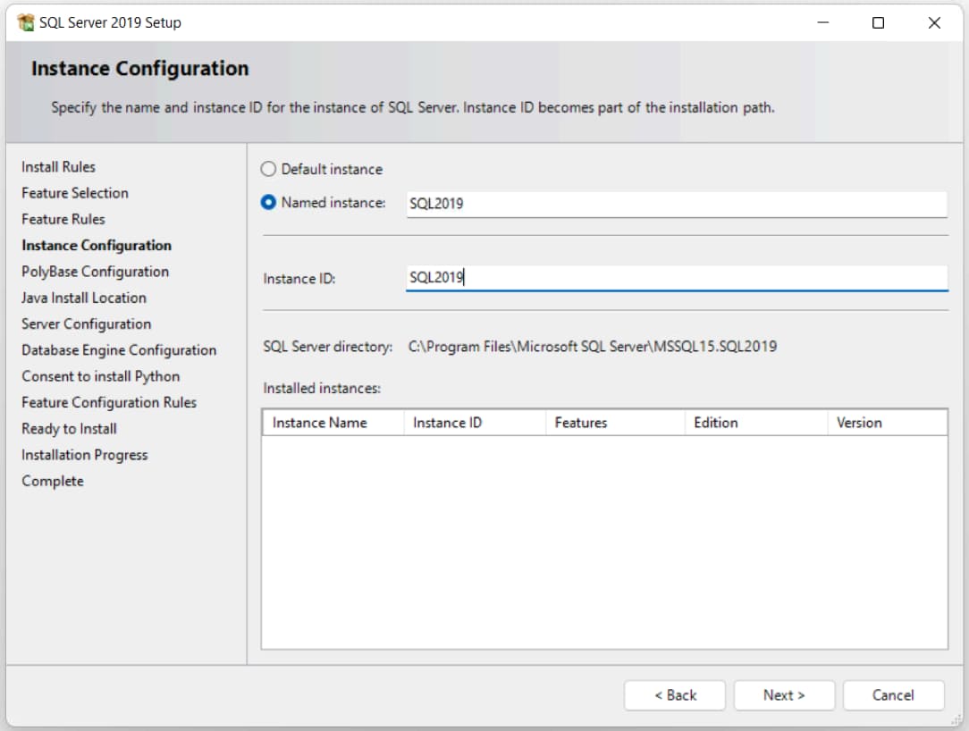 6) Next, set the interface name. If you plan to use only one instance, you can select the «Default Instance» option, in this case the connection will be made to this instance.