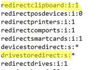 Drivestoredirect и redirectdrives – включают перенаправление в RDP сеанс для всех локальных дисков (нужна, если вы копируете файлы через RDP).