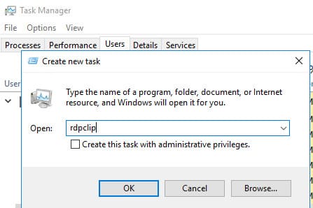 3. Сбой процесса rdpclip.exe, который отвечает за буфер обмена в RDP.