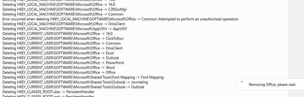5) Wait for the process to complete. All remnants of Office applications will be fully removed.