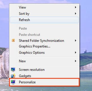 Right-click on the desktop => Personalization