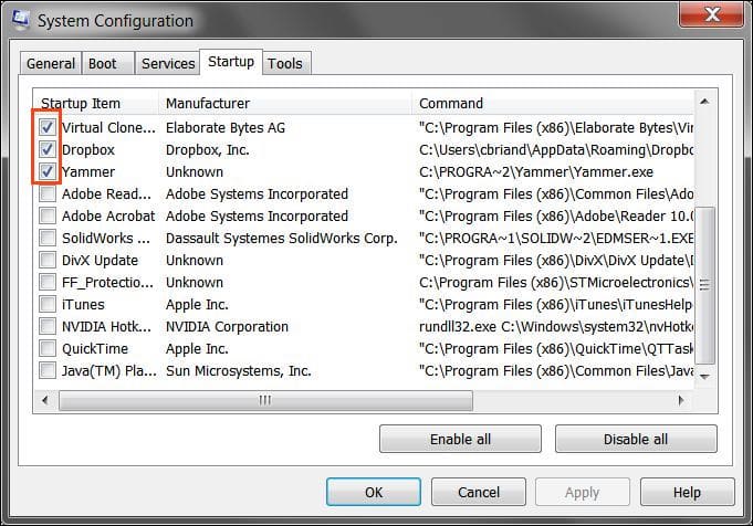 Remove everything unnecessary from there. The fewer applications in the startup, the better. Leave only the most necessary applications that you need personally. Disable everything unnecessary by unchecking the boxes.