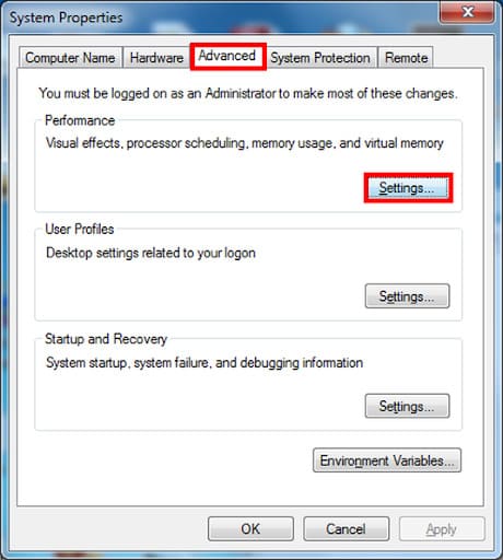 Also, you can set «Best Performance» from the «System Properties» menu. To do this, go to: