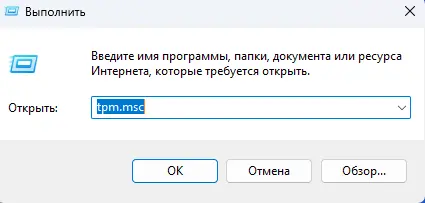 — Нажмите комбинацию клавиш Win + R и введите команду tpm.msc.