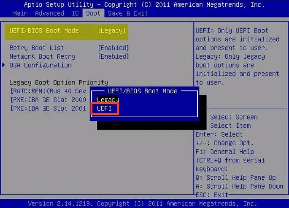 — Также убедитесь, что включен режим UEFI вместо Legacy/CSM.