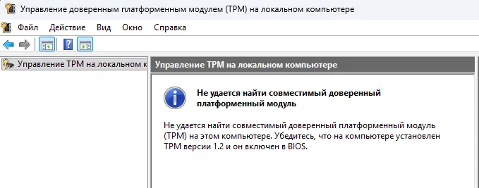 Проблема: Отсутствует TPM или он не распознается