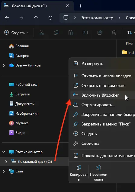 Самый простой способ включить BitLocker — через «Проводник» или «Панель управления».