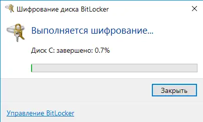 После подтверждения настроек запустится процесс шифрования. Вы можете продолжать работу на компьютере.