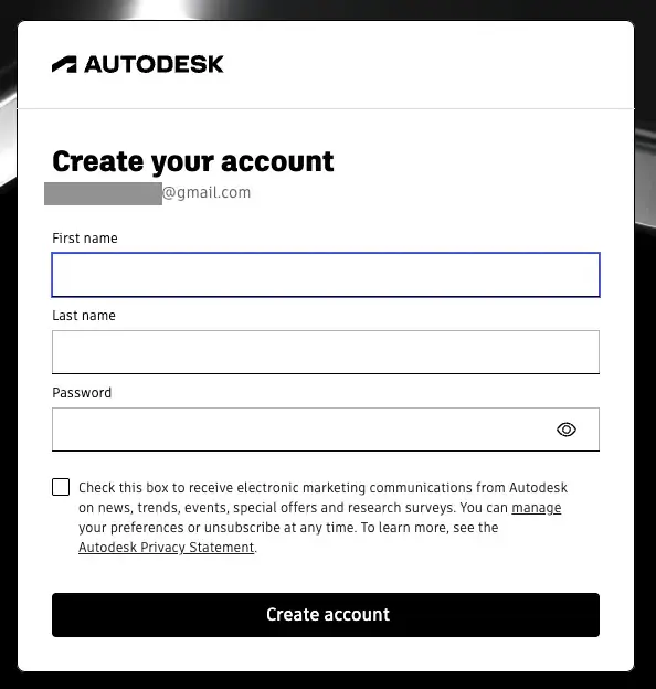 Первое, что нужно сделать — зарегистрировать аккаунт Autodesk. Для этого: