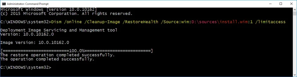 DISM /Online /Cleanup-Image /RestoreHealth /Source:wim:D:\sources\install.wim:2 /LimitAccess