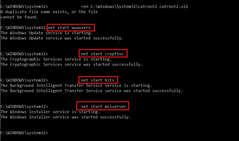ren C:\Windows\System32\catroot2 catroot2.old