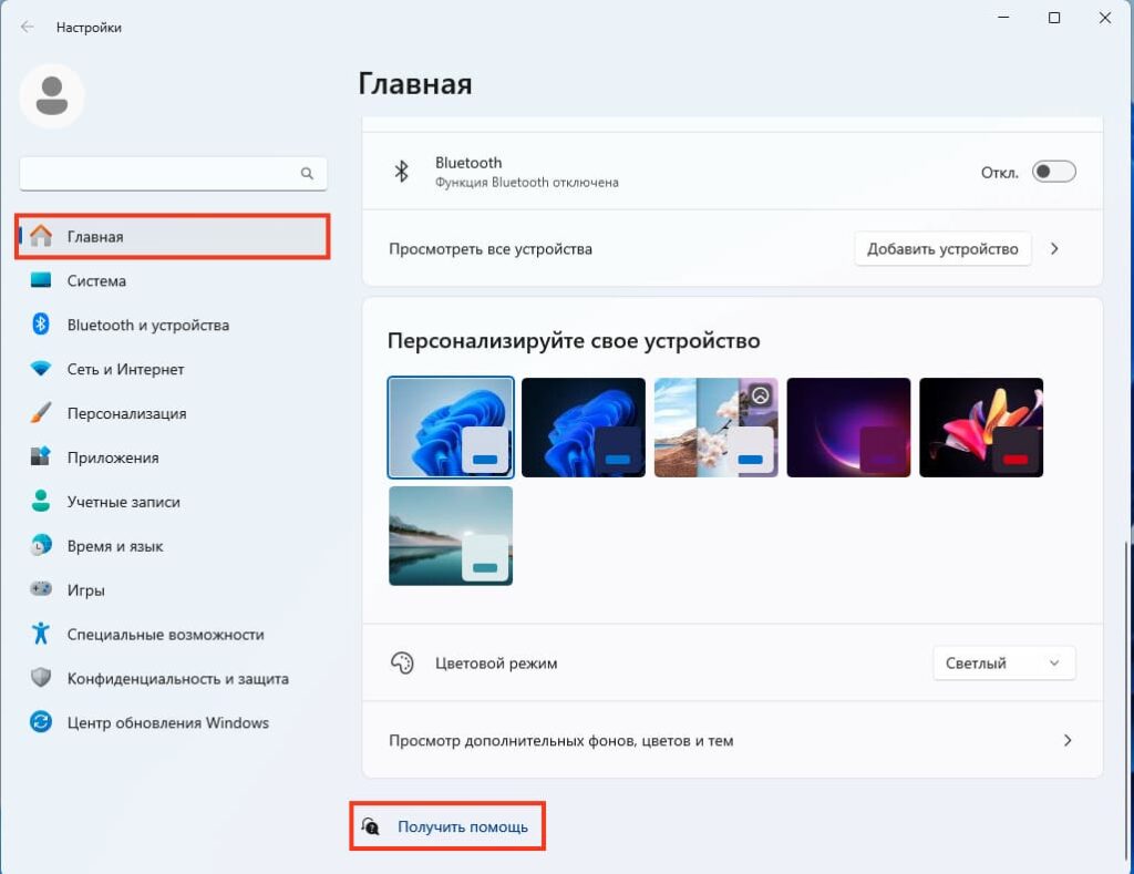 — Перейдите в раздел «Главная», затем пролистав вниз выберите пункт «Получить помощь» .