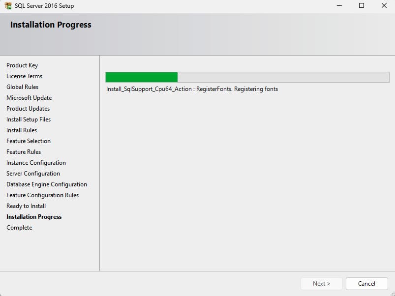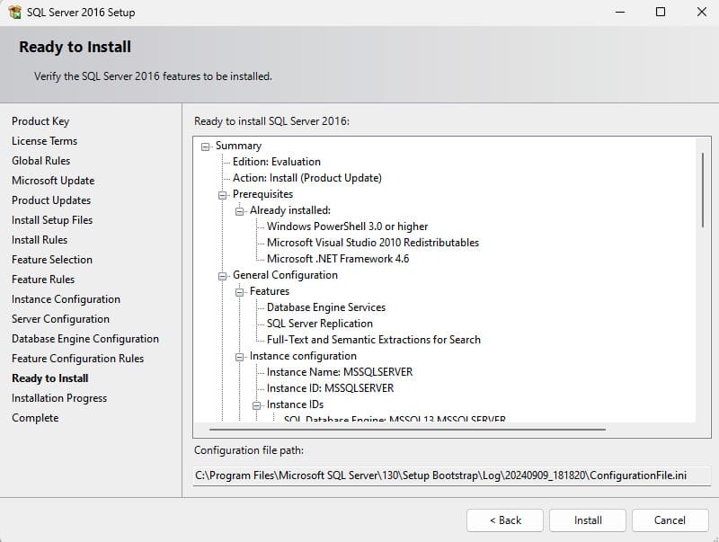 14) Now all that is left is to click «Install», and the SQL Server 2016 installation will begin.