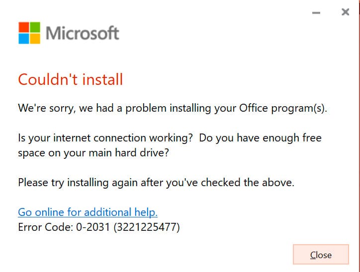 Consider an error that may occur when installing Microsoft Office (any version): Sorry, we ran into a problem streaming Office. Please try again later...