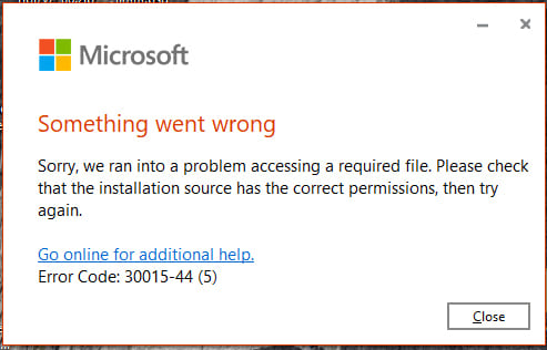 In this article, we will discuss error 30015-44 that occurs during the installation of Microsoft Office: "Something went wrong. Sorry, we ran into a p...
