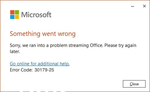 Consider an error that may occur when installing Microsoft Office (any version): Sorry, we ran into a problem streaming Office. Please try again later...