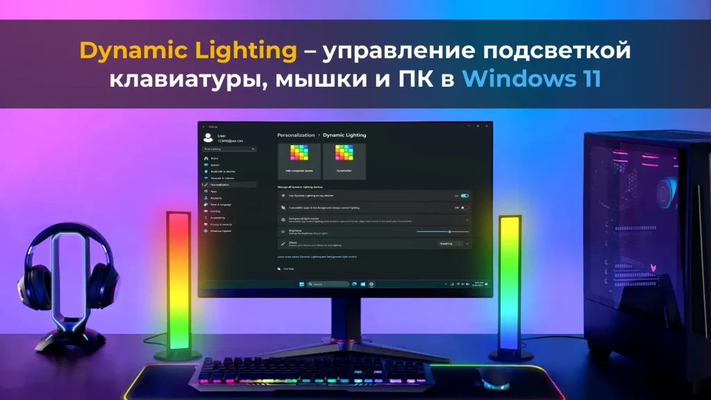 Dynamic Lighting — это новая встроенная функция Windows 11, которая позволяет управлять RGB-подсветкой клавиатур, мышей, системных блоков и других сов...