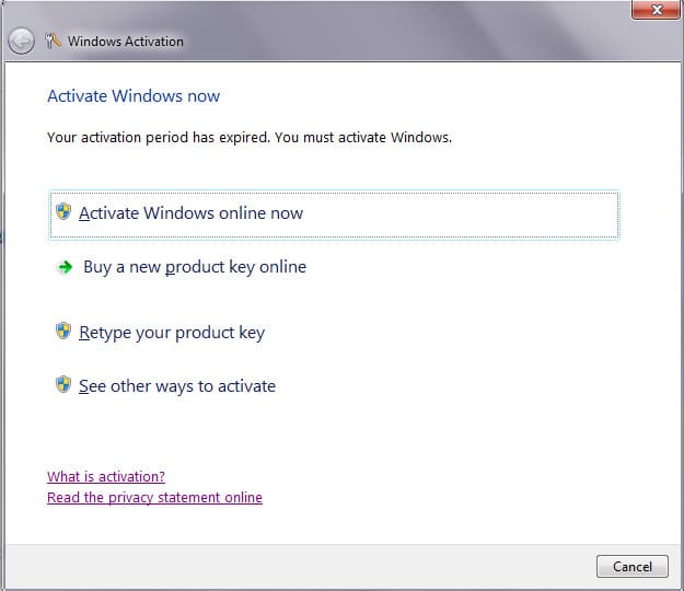 What to do if you see a window on your Windows 7 with the message "Activate Windows now. Your activation period has expired. You must activate Windows...