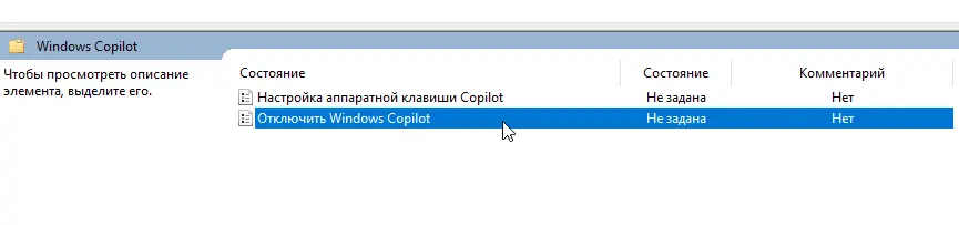 Политика: Отключение Windows Copilot