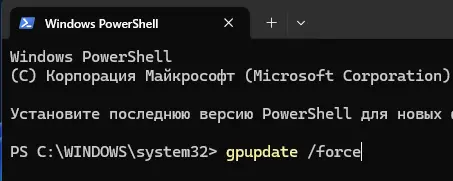 2. Введите команду: gpupdate /force