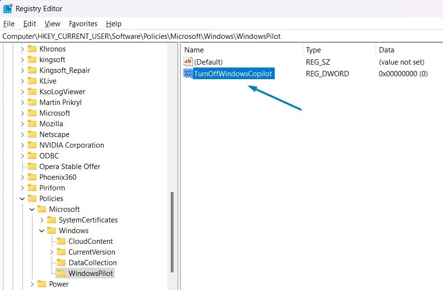 — Путь: HKEY_CURRENT_USER\Software\Policies\Microsoft\Windows\WindowsCopilot (для текущего пользователя)