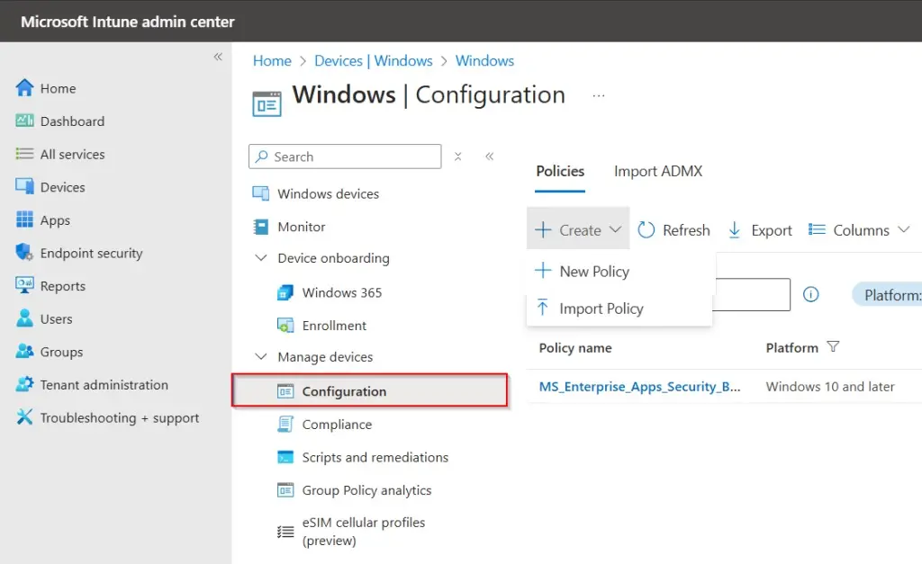 — Местоположение: Эта политика часто доступна через CSP (Configuration Service Provider) в Intune.