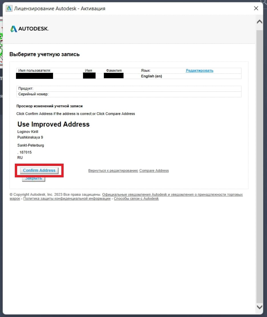 11) Следующим окном Вам нужно ввести серийный номер и ключ продукта. Если у вас нет лицензии для Autodesk AutoCAD, приобрести ее можете в нашем каталоге на следующей странице от 0 ₽. Моментальная доставка лицензии на Вашу электронную почту сразу после оплаты. При покупке Вы получите серийный номер и ключ продукта, эти данные нужно ввести в это окно активации. После нажмите «Далее».