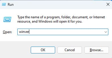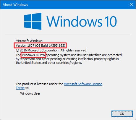 Press Win + R keys => In the «Run» window, type winver => OK