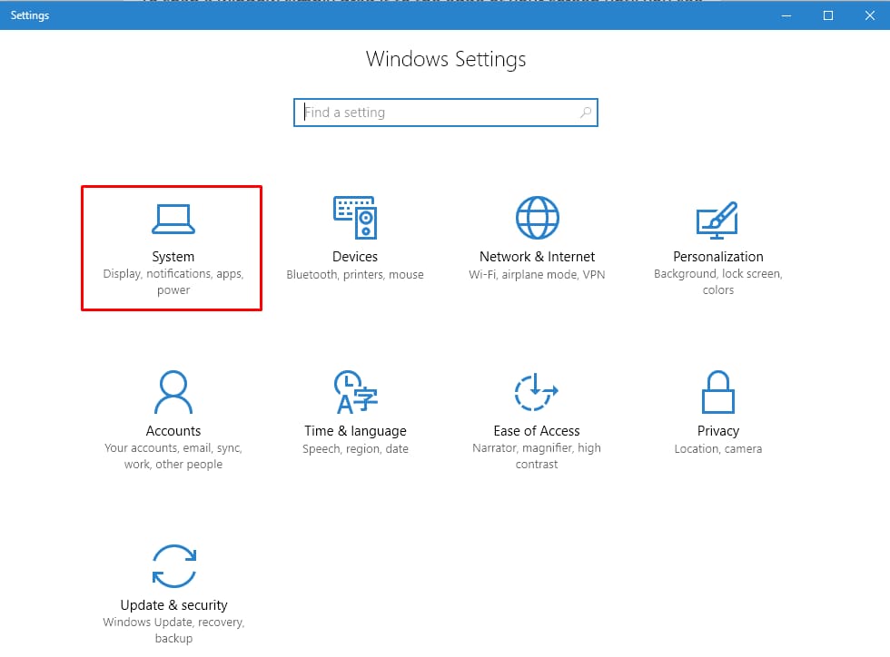 In the «Settings» window, go to «System».