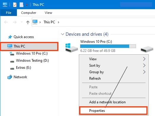Open any folder => Look for «This PC» on the left side => Right-click on it => Properties