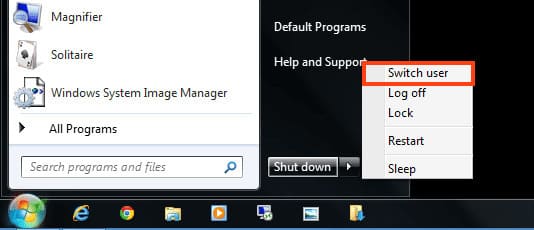 So, to switch to using a new user, click on the «Start» menu => Left arrow => Switch user.