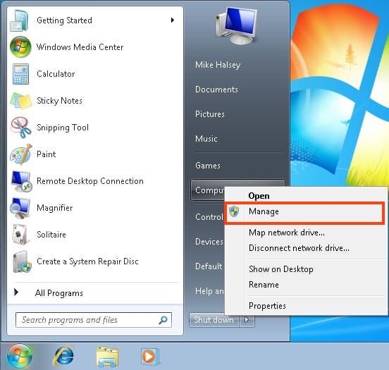To view devices without specific drivers, go to the «Device Manager» menu. You can do this from the «Start» menu => Right-click on «Computer» => Manage => Device Manager.
