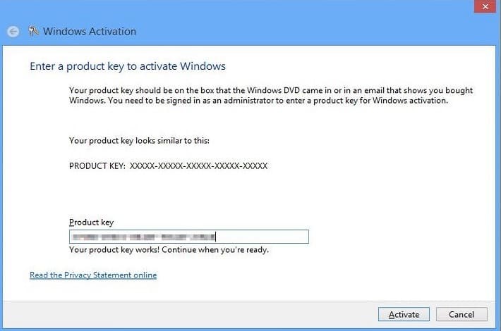 Next, the Windows activation window will appear. Enter your product key in the input field.