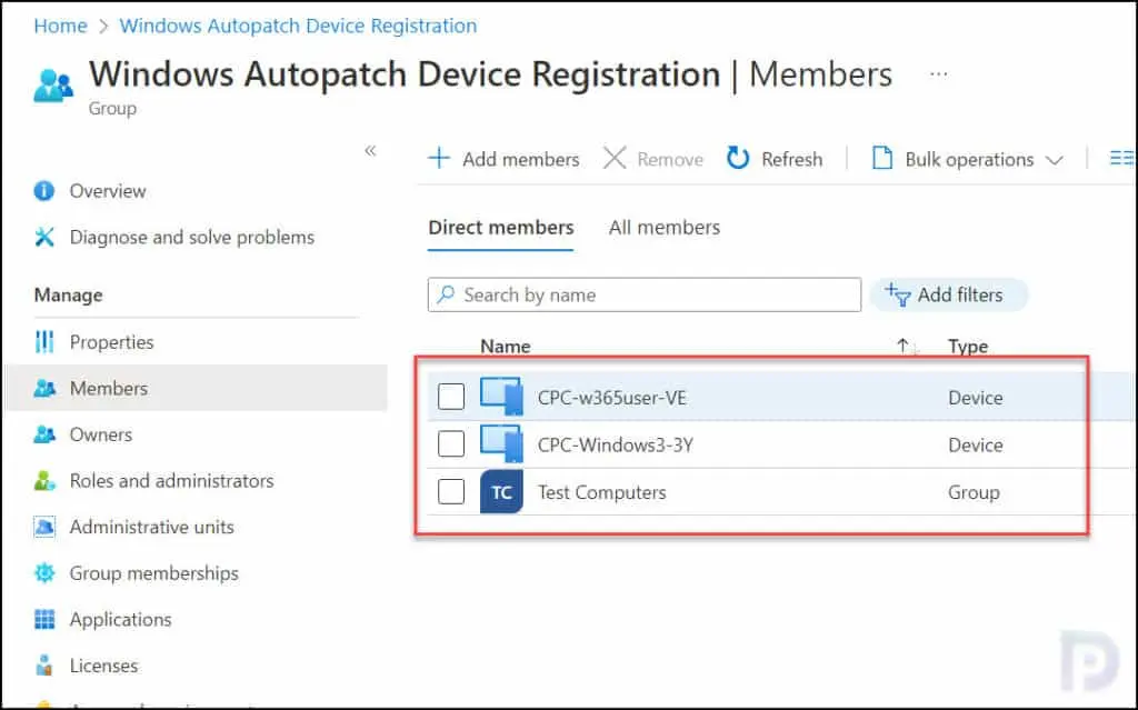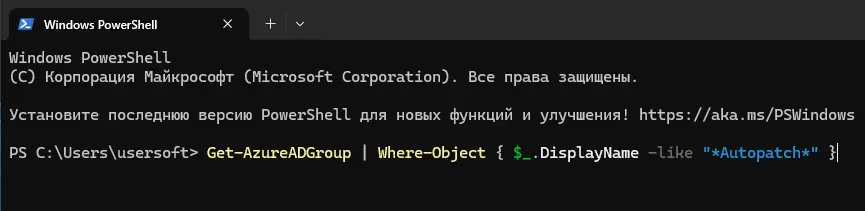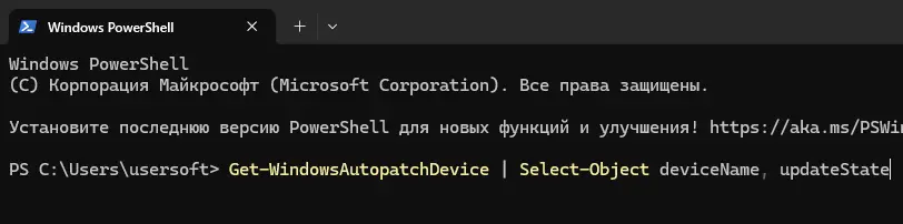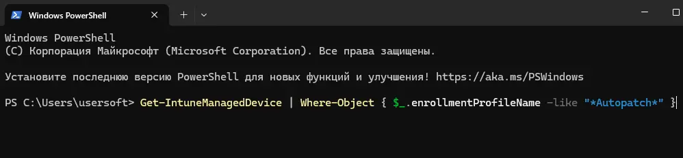В Intune PowerShell модуле можно проверить устройства, зарегистрированные в Autopatch:
