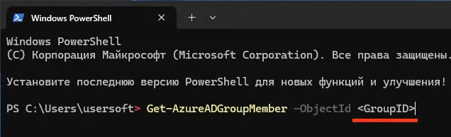 Get-AzureADGroupMember -ObjectId <GroupID>