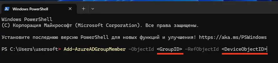 Устройства должны быть связаны с группами Entra (Azure AD) или динамическими группами, чтобы система могла их обнаружить и принять.