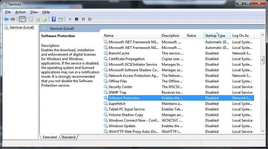 The «Services» menu will open => Find «Software Protection» in the service list